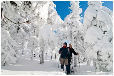 Depuis le 12 décembre, le parc du Mont-Mégantic a ouvert ses sentiers de raquette et de ski de fond. Les sapins ont mis leur grand manteau blanc et, selon l’altitude, le sol accueille entre 10 et 30 centimètres de neige.