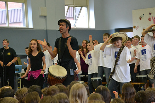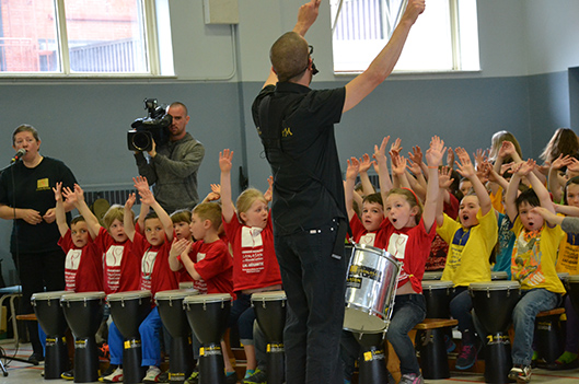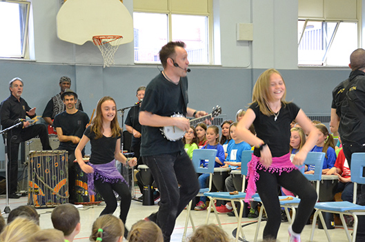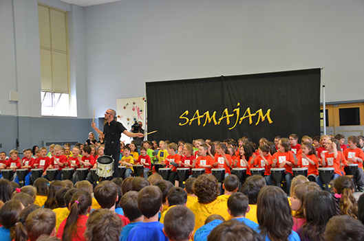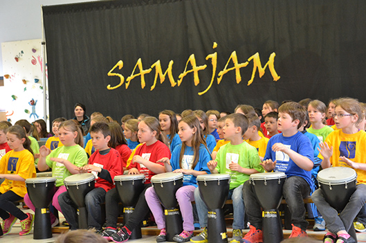 La musique festive était à l’honneur cet avant-midi à l’école Sacré-Cœur. Les quelque 360 élèves de l’établissement ont livré toute une performance, démontrant ainsi le résultat du travail accompli dans le cadre du second projet mené par la Caravane musicale Samajam au cours de la présente année scolaire. Airs sud-américains, d’influence reggae et typiquement québécois composaient le spectacle d’une heure, présenté dans l’après-midi par les écoliers de Notre-Dame-de-Fatima.