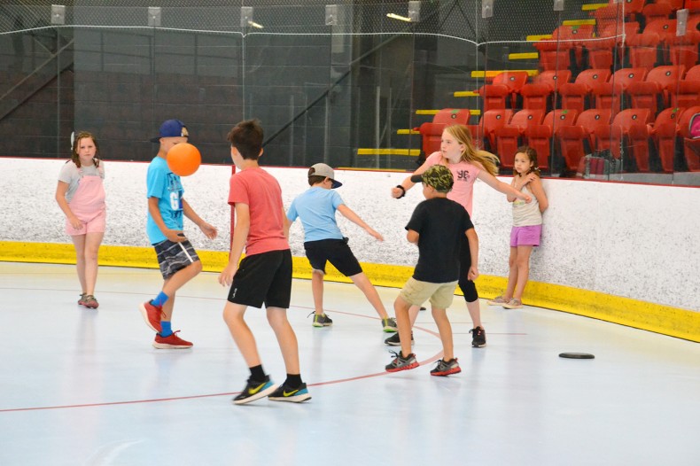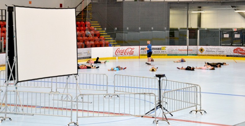 Réservé exclusivement au camp de jour, le Centre sportif Mégantic est exploité dans son entièreté et des flèches au sol orientent les aires de circulation. Les sièges de l’aréna tiennent lieu de vestiaires, permettant de respecter la distanciation tout en offrant des places de choix lors de la projection de film sur l’écran géant disposé sur la dalle de béton. Une immense surface qui sert également à des activités de groupes, tout en respectant la distanciation. Laquelle a été réduite à un mètre pour les 16 ans et moins, à peine trois jours avant le début du camp qui accueille des enfants de 5 à 12 ans. Une excellente nouvelle, fait valoir André Samson.