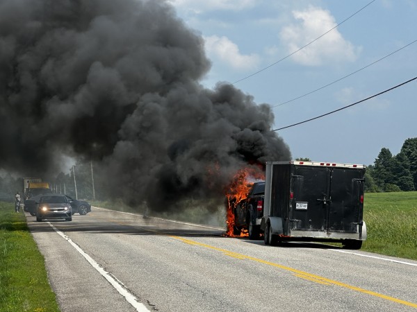 Jeudi 6 juillet vers 14h30, route fermée, camion en flamme