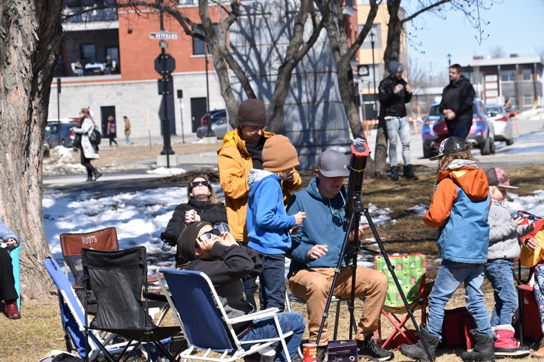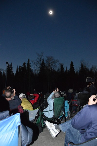 La foule d’observateurs dans le parc des Vétérans a été estimée entre 800 et 1000 personnes. De différentes provenances : Californie, Floride, Ontario, Michigan, un couple de Hongrois chasseurs d’éclipses à leur 6e expérience, New Jersey, Massachusetts, Pennsylvanie, Seattle, Nouvelle-Écosse, France, une équipe de Météo-Média et deux autobus du Cégep de Jonquière.