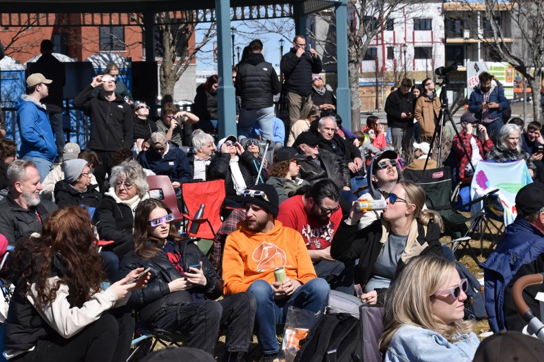 LAC-MÉGANTIC- Le parc des Vétérans noir de monde venu de partout pour observer l’éclipse. (Photo Suzanne Poulin)