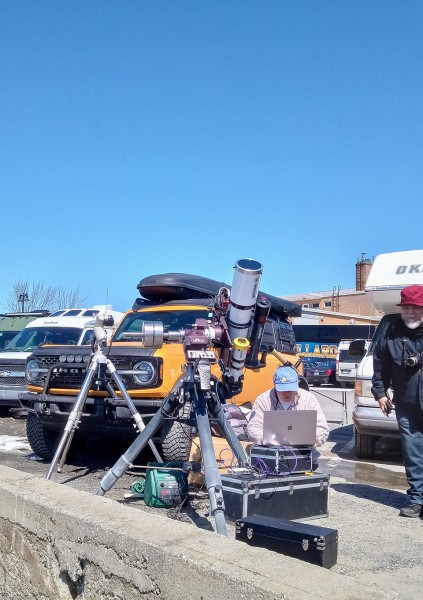 LAC-MÉGANTIC- Un chasseur d’éclipse du Michigan installe son matériel. (Collaboration Muriel Lassagne)