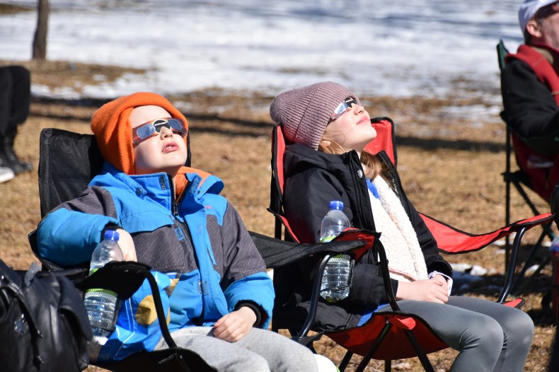 LAC-MÉGANTIC- Ces enfants observent avec attention le phénomène qu’ils auront peut-être la chance de revoir en 2106! (Photo Suzanne Poulin)