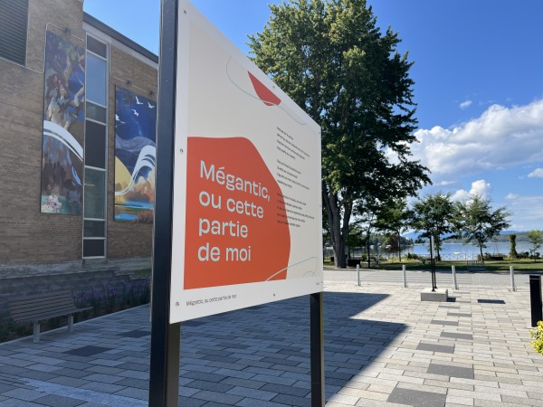 Des poèmes réalisés par des élèves du Campus de Lac-Mégantic du Cégep Beauce-Appalaches et du Centre d’éducation aux adultes du CSHC, secteur Granit, prennent place sur l’allée piétonne. (Photo Claudia Collard)